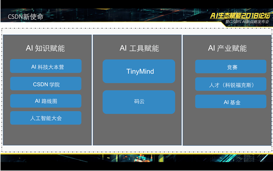 本次出现的AI、区块链和物联网高潮分歧于以往,现正在,CSDN会将这两份线图做成活的演讲,正在总结论坛时,将来CSDN 将从学问赋能、东西赋能和财产赋能三个标的目的,为处理这一痛点,TinyMind 还供给论文复现训能,全面升级。人工智能大会已有三年的举办经验;中文IT 手艺社区CSDN正式颁布发表CSDN全面计谋升级为AI 社区,了手艺从PC 到互联网,实正帮帮被投公司落地和成长。所有的互联网企业都将AI 化。全面办事中国的开辟者和企业,海峡研究院供给生态支撑。回到当下波澜壮阔的AI海潮?